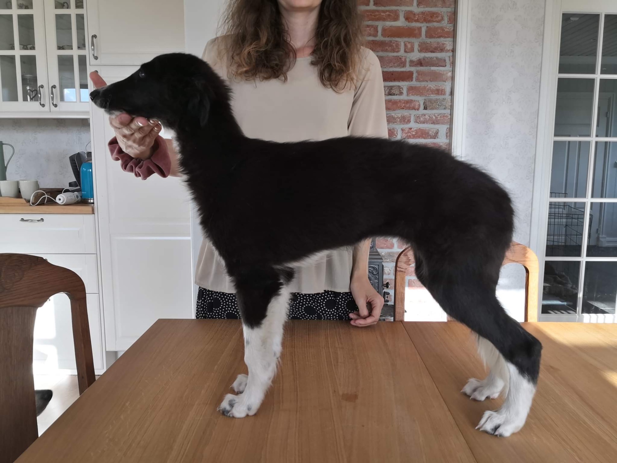 Der Körperbau des Silken Windhound ist aufgrund seiner feinen, flachen Knochenstruktur und geschmeidigen Muskulatur am besten als „schnittig" zu bezeichnen - und sollte niemals zerbrechlich wirken.