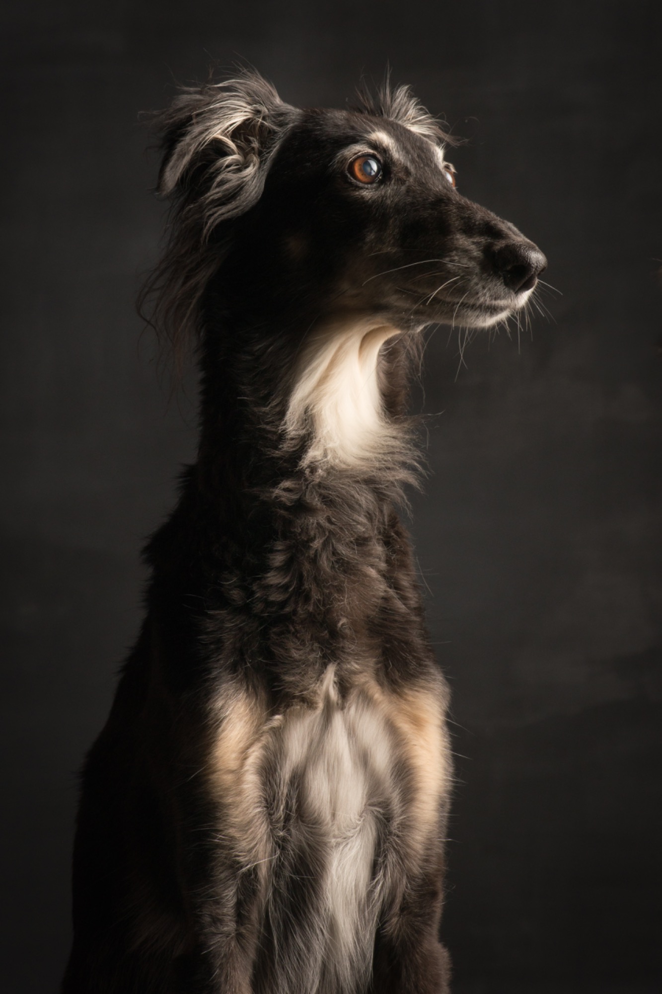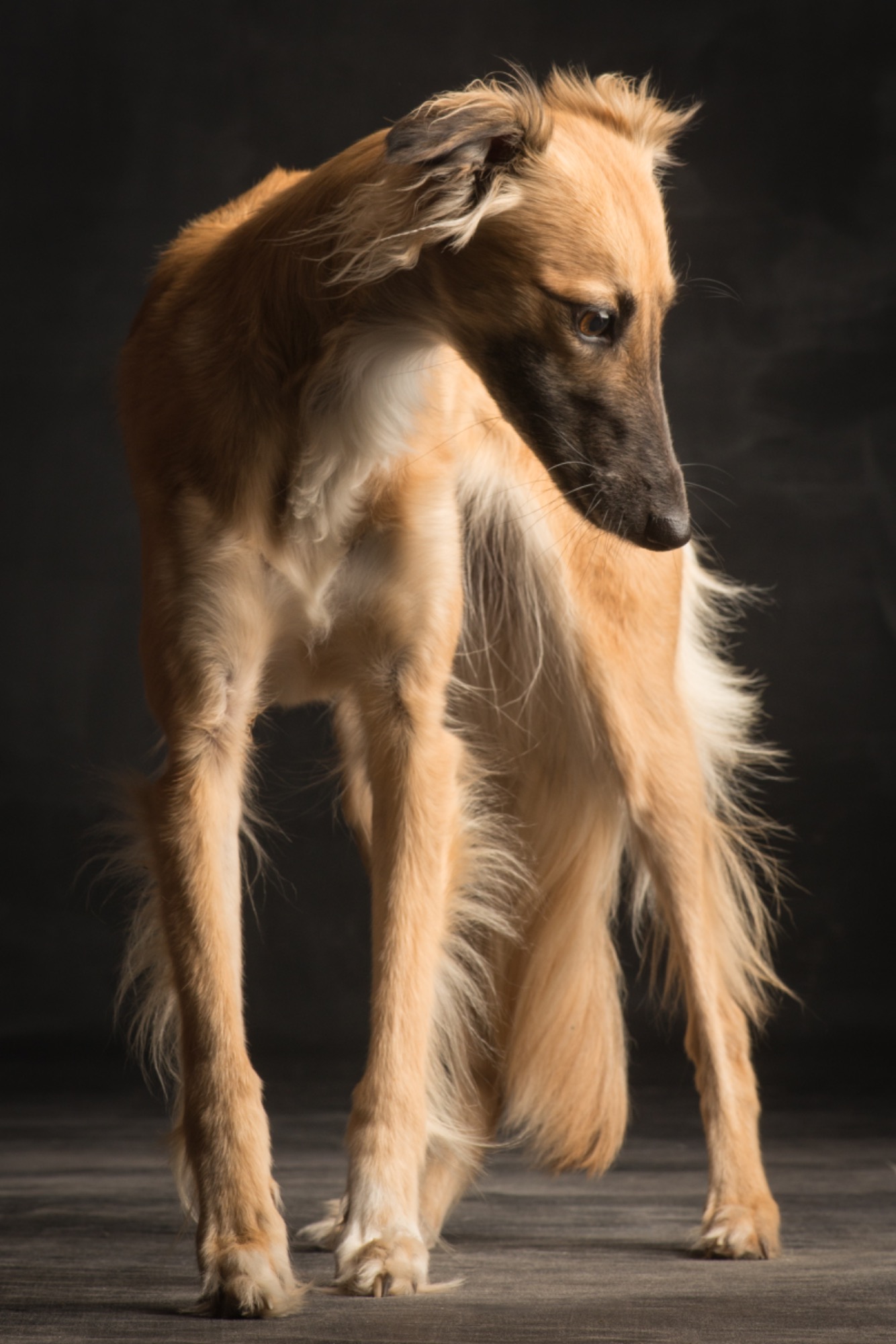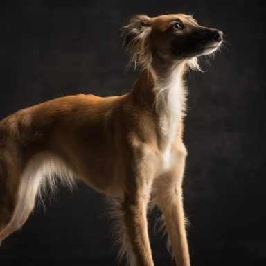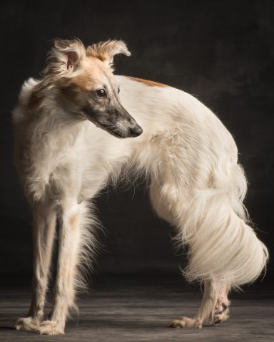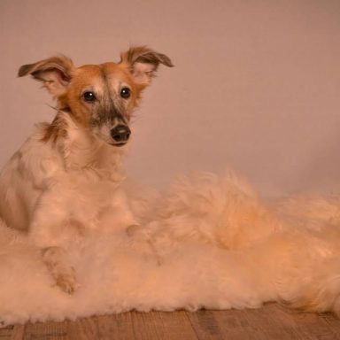 Der Silken Windsprite ähnelt im Exterieur sehr dem Whippet, bis auf das seidige, feine, aber schützende Fell. Der Gründer der Rasse, ein Whippetzüchter namens Walter A. Wheeler jun. hatte sich seit 1958 zum erklärten Ziel gemacht, langhaarige mittelgroße Windhunde in der Art zu gewinnen, wie sie immer wieder auf niederländischen Gemälden aus dem 15. und 16. Jahrhundert zu sehen sind und stark an langhaarige Whippets erinnerten. Wobei natürlich angemerkt werden muss: Im 16., 17. und 18. Jahrhundert (lange vor der Erfindung von Standards) wurde jeder kleinwüchsige Windhund “Whippet”, „Whippert“ oder “Windspiel” genannt, wenn er nicht zur Jagd eingesetzt, sondern allein zum gesellschaftlichen Vergnügen gehalten wurden. Ob die langhaarigen, mittelgroßen bunten Windhunde auf den besagten Gemälden wirklich eine gezüchtete Rasse waren oder schlicht besonders hübsche Mischlinge, sei dahingestellt. In jedem Fall ist es Walter Wheeler (+2013) gelungen, diese langhaarigen mittelgroßen Windhunde als eine neue Rasse mit einem eindeutigen, unverwechselbaren Typ zu schaffen.