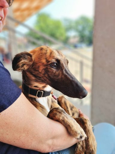Staffa - unsere Jüngste im Bunde - ist für mich eine ganz besondere Seele, denn ich bin davon überzeugt, dass meine beiden ersten Windsprites Zoe und Lili, die beide leider nicht mehr leben, mir diesen Schatz geschickt haben. Unser Igelschnäuzchen ist extrem verschmust und anhänglich - gleichzeitig begegnet sie der Welt aber total unerschrocken und neugierig. Sie ist ganz leicht zu führen, begnet Situationen intuitiv richtig und ist eine passionierte Flitzepartnerin für Soleil.
